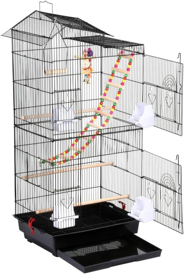 SWEET HOME FOR SMALL BIRDS: The bird cage measures L46cm x W35.5cm x H99cmwith a bar spacing of 1cm. It can be a spacious and safe home for small birds like budgies, canaries, lovebirds and finches.