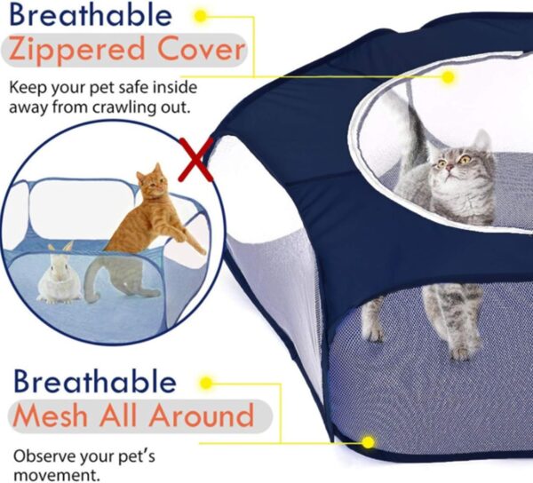 【EASY TO CARRY】Both outdoors and indoors.Can be folded into a circle.When you take your pet out, you don’t need to bring a big cage.It can limit the scope of a pet’s activities.Suitable for indoor, outdoor, tourism, camping.Portable animal enclosures are suitable indoors around the house, or camping outdoors or in the yard to make travel and movement very easy.